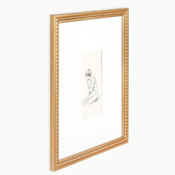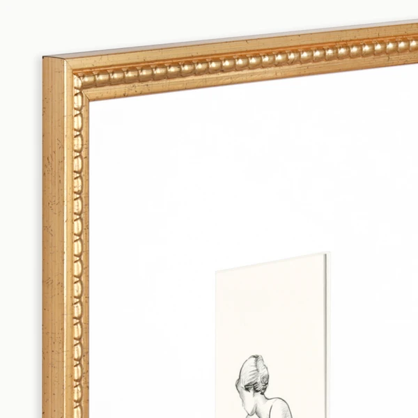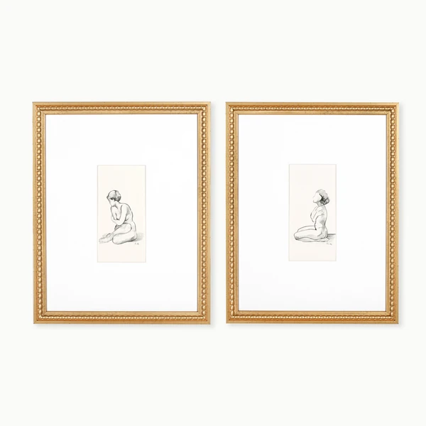 Bare is a framed graphics under glass with gold beaded profile frames. Set of 2.