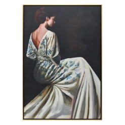 This captivating work from artist David Erickson captures a demure figure in a floral gown. Printed on canvas with an image brush gel finish for added texture, this piece is displayed in a gold floater frame.
