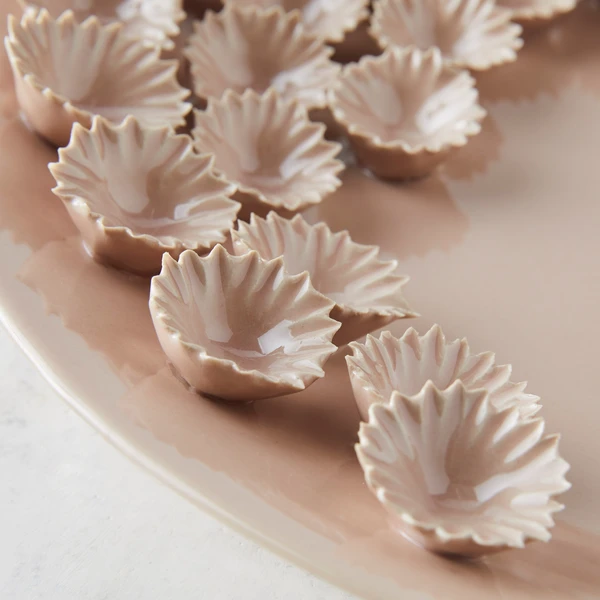 Crafted of stoneware with a dimensional floral design and glossy blush finish, this decorative plate adds incredible texture and shine to any tabletop display.