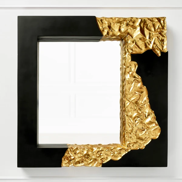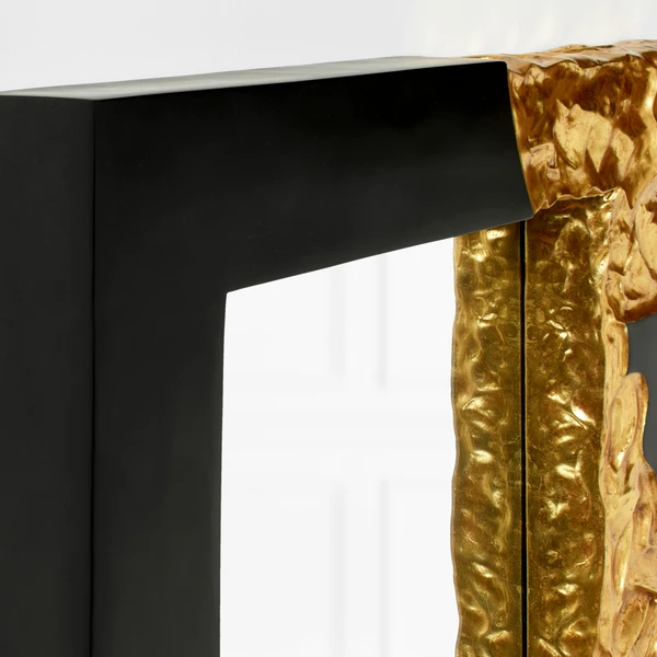 Perfect for adding drama and visual interest to your space, this mirror features a matte black lacquered frame embellished with textural gold-leaf accents.