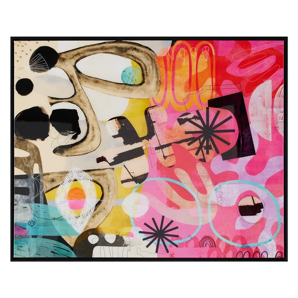 Printed on canvas with a glossy finish and set in a black frame, this striking work from Nikki Chu lends a modern mood and vibrant color to the wall.