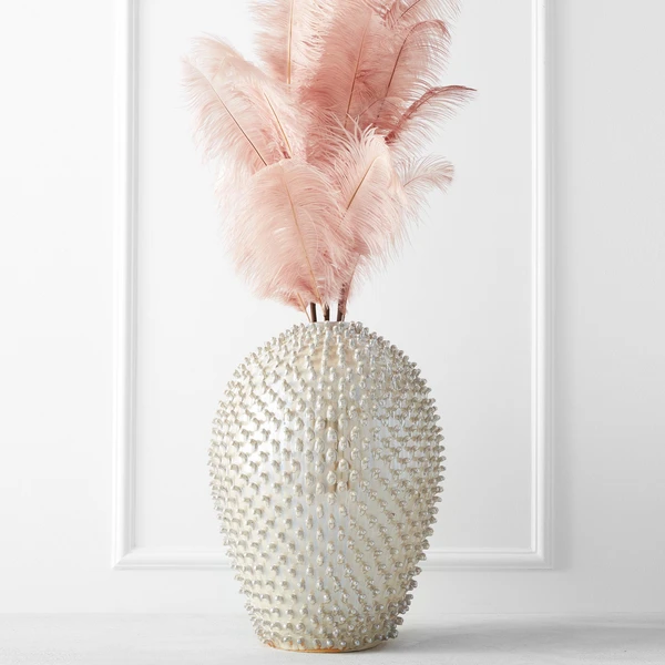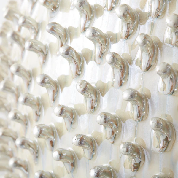 Featuring a dimensional design and hand-glazed finish with subtle iridescent tones, this porcelain vase makes an eye-catching statement on any shelf.