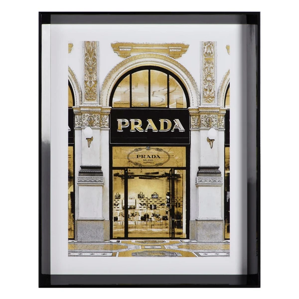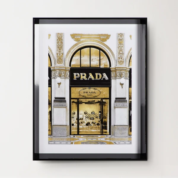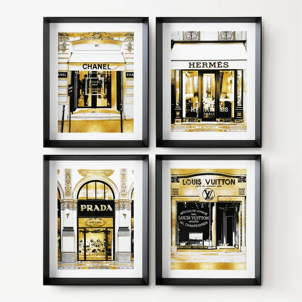 Ideal for adding a luxe note to your space, the glam storefront prints in this series are rendered in black, white, and gold and come beautifully framed.