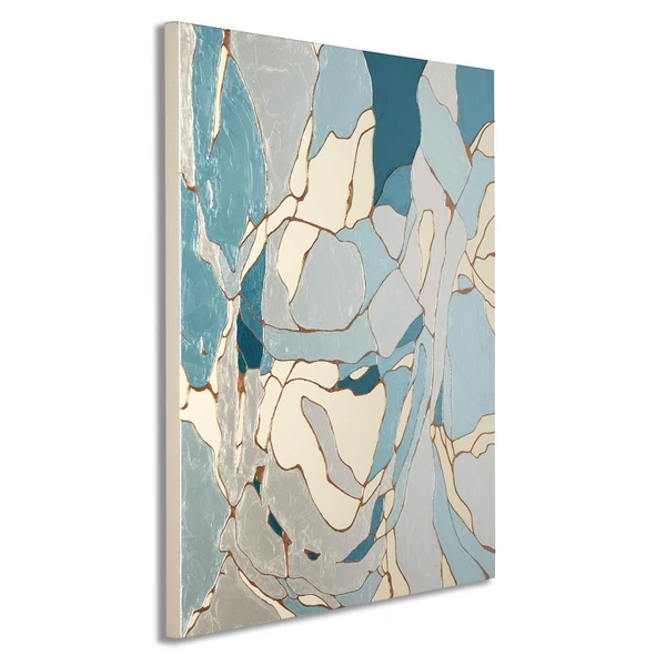 Featuring an organic, mosaic-like design in cool hues, this original work from artist Beverly Fuller is painted on canvas with a beautifully textural finish.